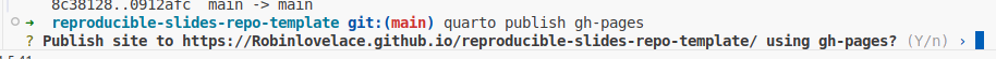 Source of quarto publish gh-pages hint: Error message from GitHub Actions when trying to publish slides to GitHub Pages:
